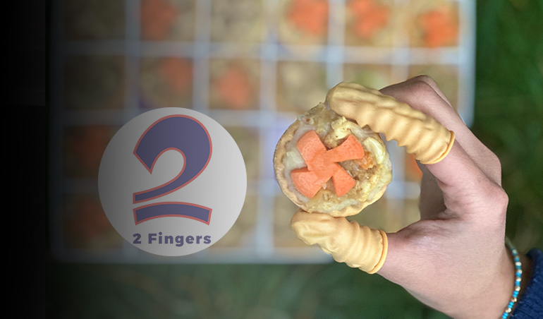 فكرة 2Fingers هيا ابتكار التارت المالح (بعكس المتعارف عليه التارت الحالي) بنكهات مختلفة متنوعة من الدجاج واللحم والتونا والأجبان والبطاطس وغيرها من النكهات المالحة، بحيث تعيش تجربة مختلفة من لبس قفاز الاصباعين وتناول التارت.